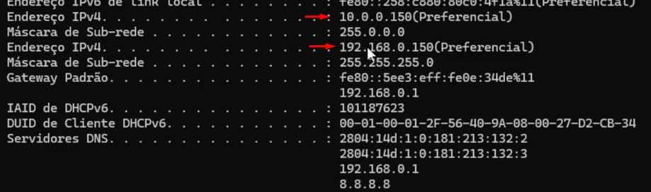 Importante: Não se pode ter 2 IPs na mesma sub-rede, por exemplo, 192.168.0.150 e 192.168.0.200, pois isso gerará erro.