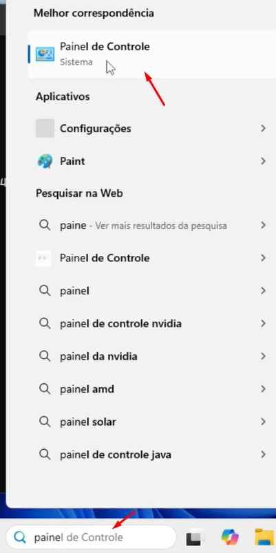 Digite “painel de controle” na caixa de pesquisa do Windows. Ao aparecer na lista, clique sobre ele para abrir.