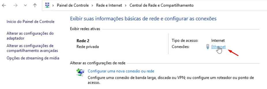 Nesta tela mostra a interface de rede conectada no seu PC.