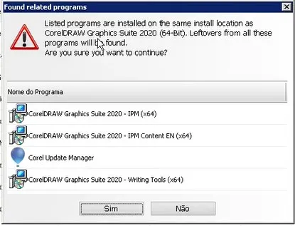 Nesse caso específico, ele dá um alerta que tem outros programas listados que estão instalados no mesmo local.