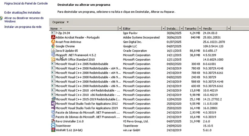 Aqui aparecem todos os programas instalados no Windows deste notebook que estou usando.