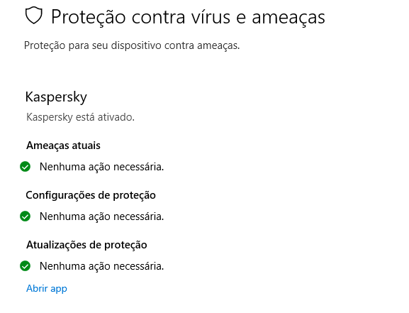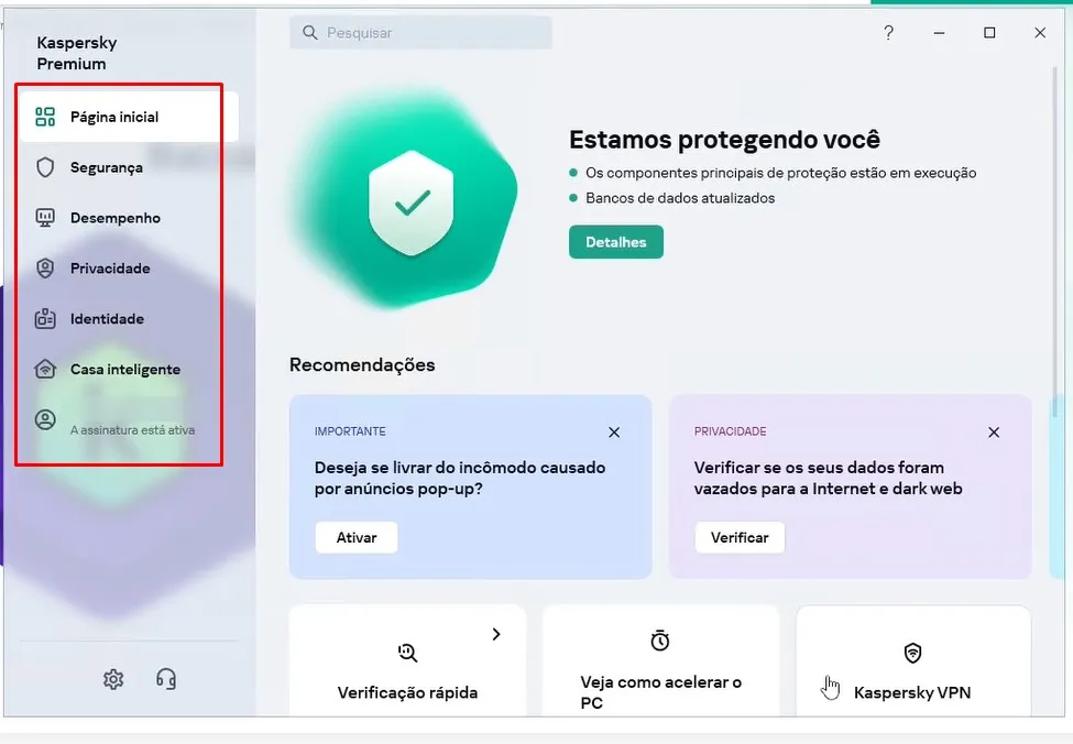 Nesse caso aqui o Kaspersky assume a parte de segurança do PC.