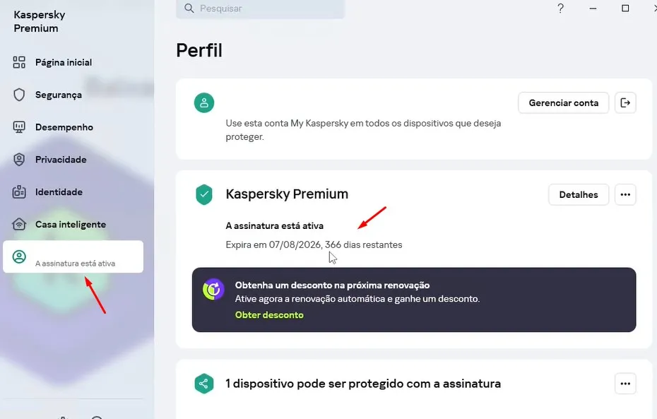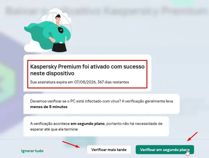 Na tela seguinte confirma que o Kaspersky Premium foi ativado com sucesso.