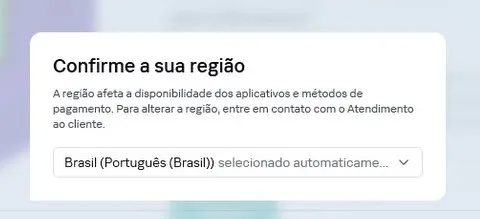 A seguir pede para confirmar a região.